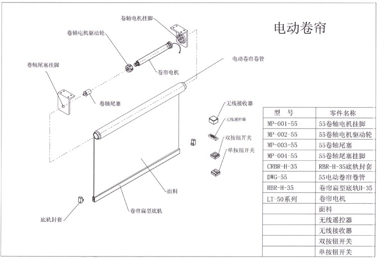 电 机:管状电机,根据宽度和长度可以选用不同力矩的电机